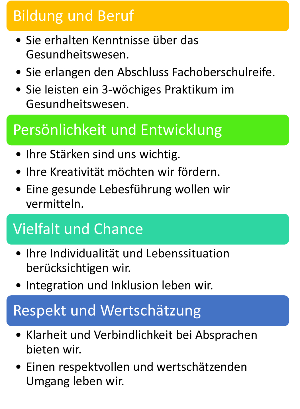 Die einjährige Berufsfachschule FOR Gesundheitswesen ist eine Vollzeitschulform.