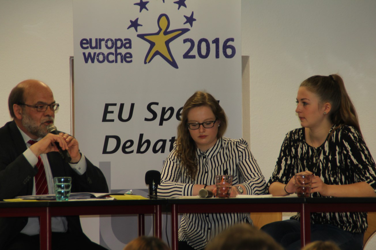 Im Rahmen der Europawoche des Bundestages, die seit 2007 durch Initiative von Bundeskanzlerin Angela Merkel entstand, waren die Bundestagsabgeordneten der Region zu Gast im Berufskolleg in Erkelenz. Am Montag stellt sich der Bundestagstabgeordnete der CDU, Wilfried Oellers, der Debatte mit den Schülern. Den gleichen Schritt wagt am Dienstag Norbert Spinrath, der für die SPD im Bundestag sitzt.
