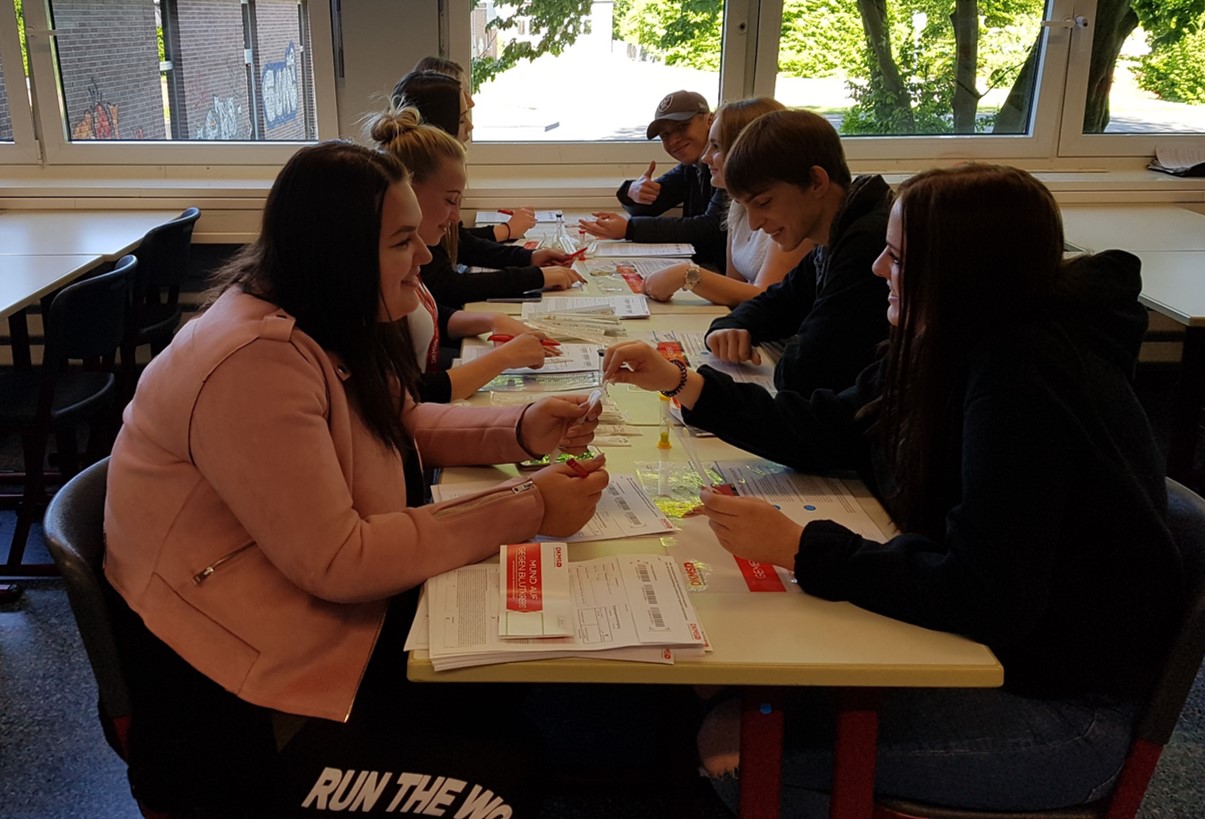 Die DKMS, die Deutsche Knochenmarkspenderdatei, war am 30. April und am 02. Mai 2018 für eine Typisierungsaktion bei uns an die Schule. Ein voller Erfolg!