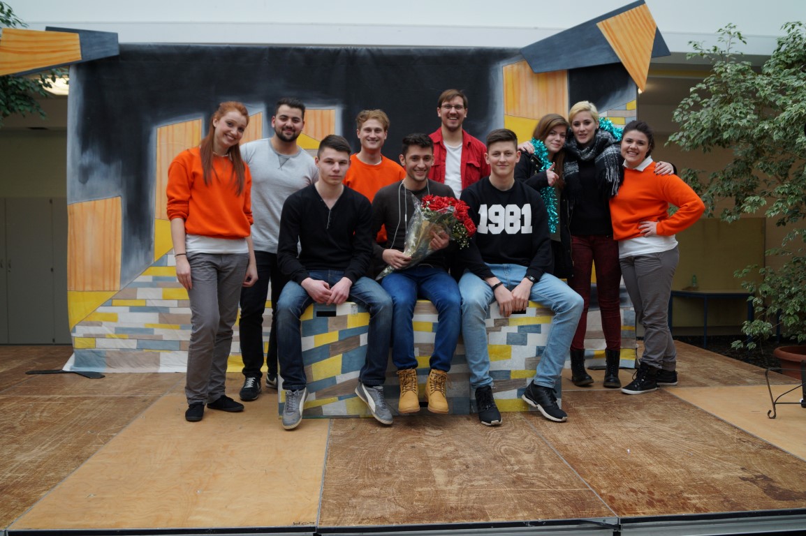 Aufgeführt wurde das Stück „Teechers“ welches über die Zustände an englischen Schulen in den 80er Jahren informiert. Das anspruchsvolle Stück spielt auf mehreren Ebenen, da etwa die Perspektivlosigkeit und Respektlosigkeit der Schüler ebenso thematisiert werden wie die Resignation vieler Lehrer. Die zahlreichen Perspektivwechsel verlangten von den Schülern unserer Schule volle Konzentration. Die teils doch sehr anspruchsvollen, sprachlichen Szenen wurden jedoch durch die herausragenden Leistungen der Schauspieler wunderbar unterstützt, so dass man der Handlung gut folgen konnte. Auch wiederholte Musikeinlagen lockerten die Konzentration immer wieder auf.
