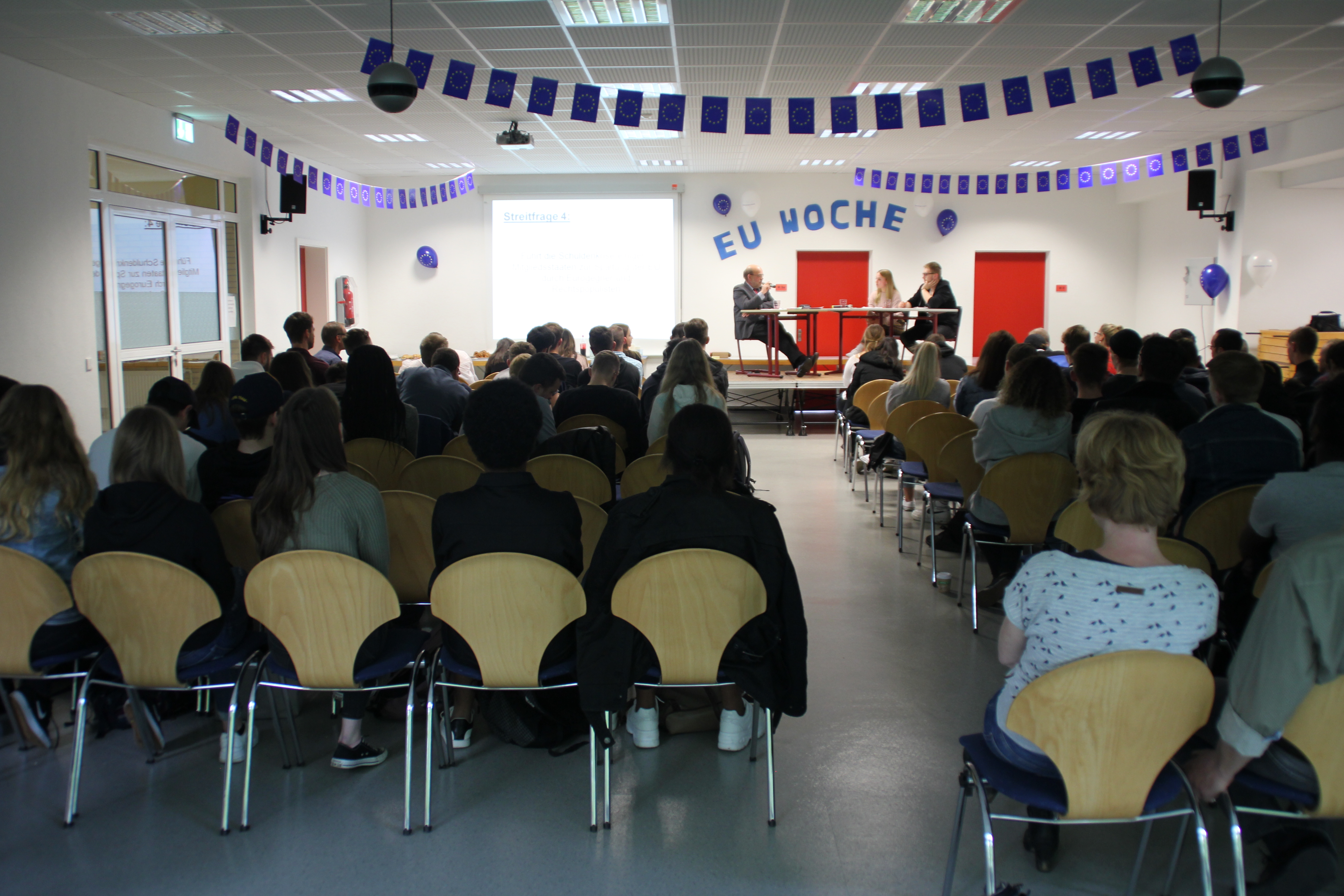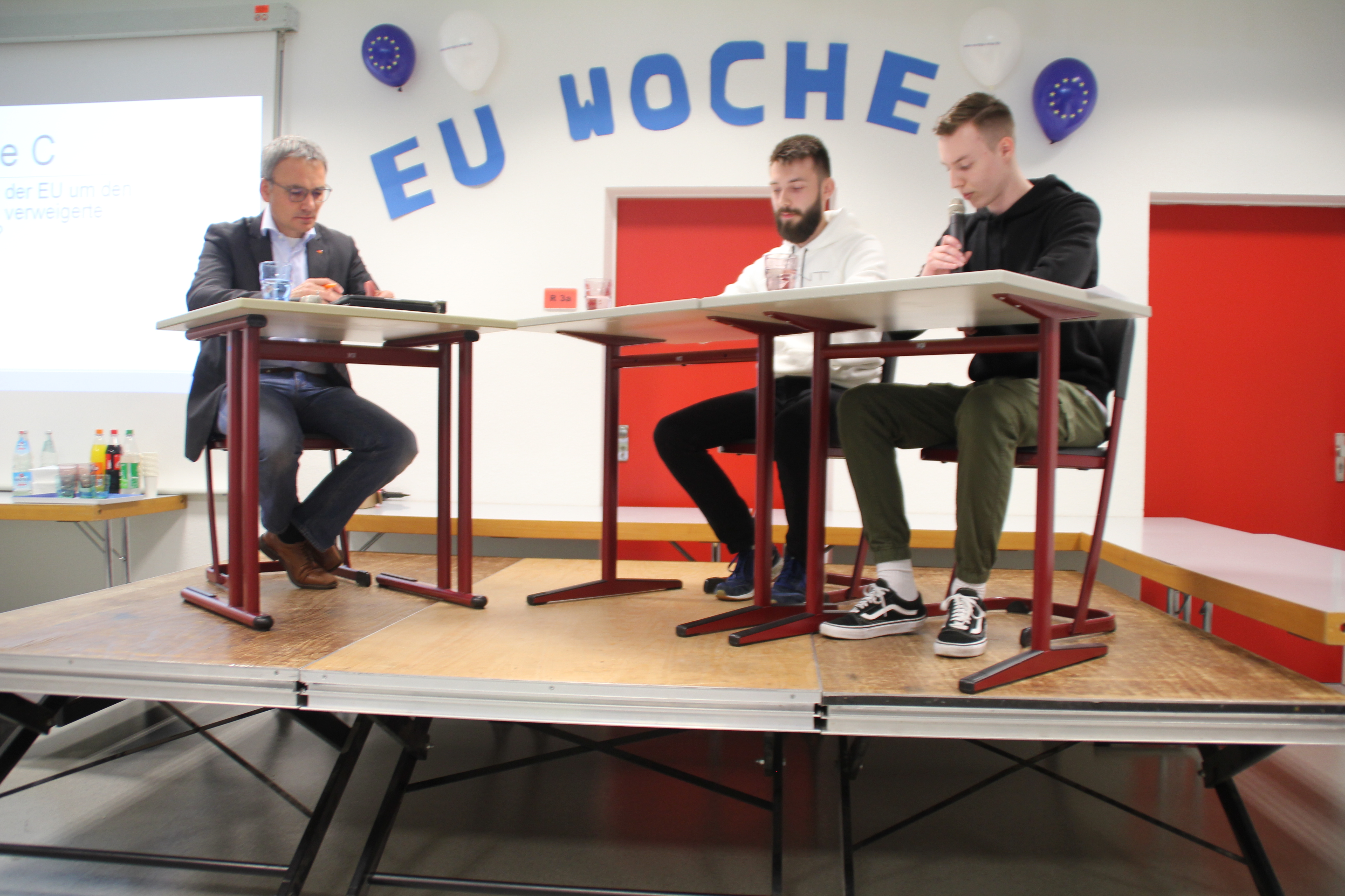 Im Rahmen der Europawoche des Bundestages, die 2007 durch Initiative von Bundeskanzlerin Angela Merkel entstand und seitdem bundesweit an Schulen durchgeführt wird, waren zwei Politiker der Region zu Gast im Berufskolleg in Erkelenz. Am Montag, dem 27. Mai 2019, stellten sich der Bundestagsabgeordnete Wilfried Oellers (CDU) sowie Norbert Spinrath (SPD) nacheinander der Debatte mit den Schülerinnen und Schülern der GM1 und GM2.