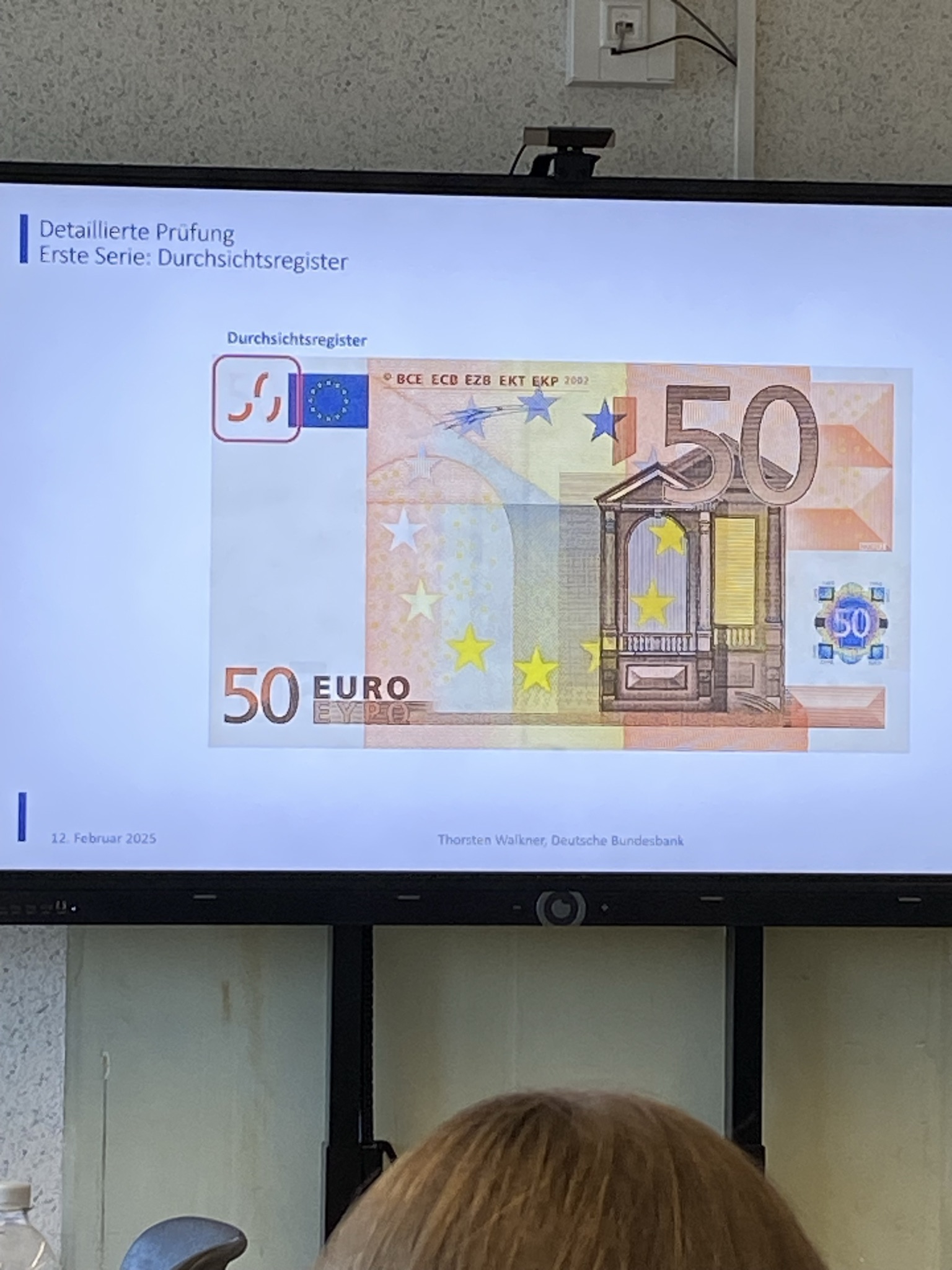 Unsere Schülerinnen und Schüler durften sich auf Spurensuche begeben und lernten durch Herrn Walkner, einen Mitarbeiter der Deutschen Bundesbank Köln, „echtes Falschgeld“ zu erkennen.