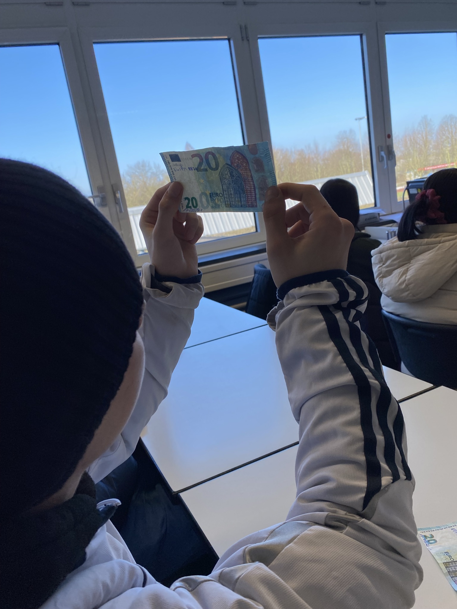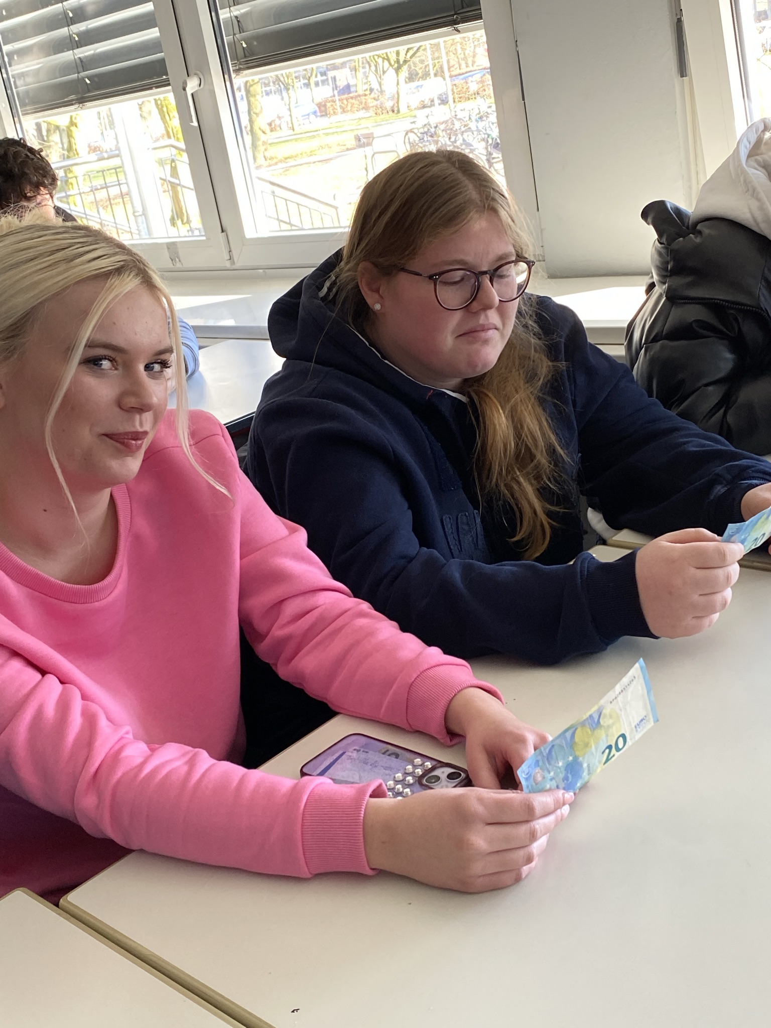Spannend wurde es als Herr Walkner Geldscheine ausgab und die Schülerinnen und Schüler aufforderte, die falschen Scheine zu identifizieren. „Gar nicht so einfach“, war der Kommentar eines Schülers.