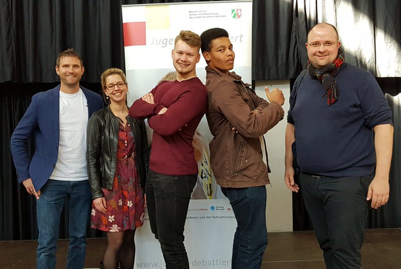 Der Tradition unserer Schule bei diesem Wettbewerb folgend wurde die Finaldebatte von unserem Schulleiter Jan Pfülb beigewohnt, der zusammen mit dem Wassenberger Bürgermeister Manfred Winkens die Finaldebatte begleitete. Gerne hat der Bürgermeister die Schirmherrschaft für den Schulwettbewerb übernommen.