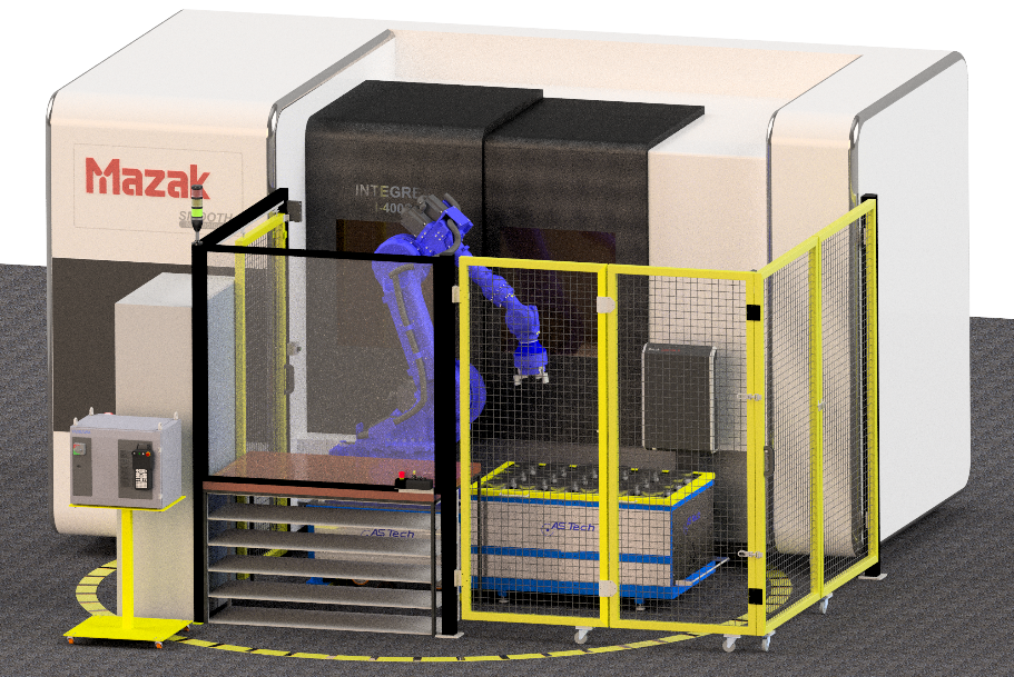 Zur Steigerung der Produktivität soll das vorhandene MAZAK-Bearbeitungszentrum durch einen Industrieroboter erweitert und somit automatisiert werden.
